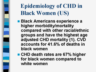 Although coronary heart disease mortality has declined among black men and women, the rate