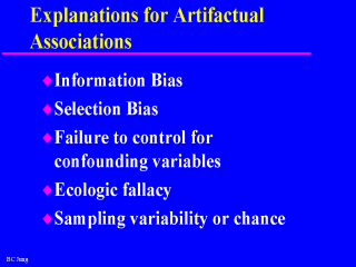 sure that the associations found are true or non-artifactual associations. All the explanations for an artifactual association are really errors that we should be aware of, and try to correct or prevent so the study’s results will stand up to scrutiny. |