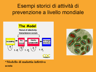 L’Eradicazione del vaiolo č l’esempio piů noto dei risultati ottenuti dall’OMS. Il vantaggio per la salute pubblica ottenuto con l’eradicazione del vaiolo č davvero impressionante. Nel 1967, quando l’OMS decise di affrontare lo sforzo internazionale per l’eradicazione, si stimava che il vaiolo colpisse 15 milioni di persone all’anno con 2 milioni di morti, mentre altri milioni restavano sfigurati e talvolta ciechi. Grazie a una sorprendente cooperazione mondiale, nel 1980 l’OMS ha potuto dichiarare eradicata la malattia. Se non fosse stata eradicata, negli ultimi vent’anni ci sarebbero stati 350 milioni di nuovi malati, circa la popolazione attuale dell’Unione Europea e 40 milioni di morti, come due terzi della popolazione italiana. (OMS, http://www.who.int/archives/who50/en/smallpox.htm) Immagini tratte dalle lezioni "Modelli di risposta potenziale al vaiolo" (Modeling