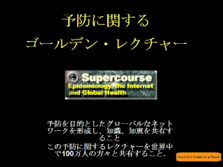 研究費助成プロジェクトで、インターネットを通して予防医学及び公衆衛生に関する世界の専門家のパワーポイントによるレクチャーを無料で公開しています。無料で公開する目的の一つは、多くの方々に共有して頂きたいからです。Supercourse