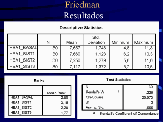 Friedman comprueba la hipótesis nula de que k variables relacionadas vienen de la misma población. Para cada caso, las k variables son ordenadas en un ranking de 1 a k. El estadístico de la prueba se basa en estos ranks.