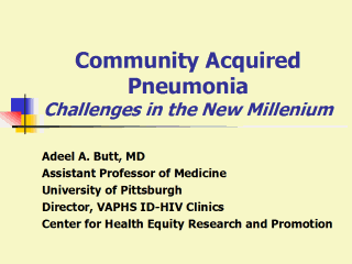 | Salutations: I am going to talk mainly about the work-up of CAP and the IDSA guidelines for the treatment of CAP. |