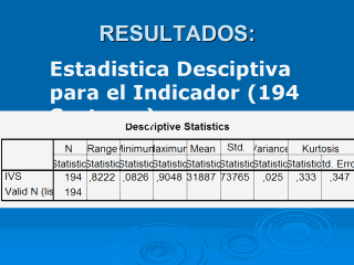 Estadistica descriptiva para el Indicador de Vulnerabilidade Social para 194 Sectores Censales.