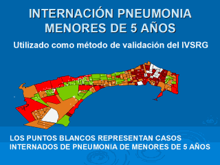 La distribución de puntos cada uno de los cuales representa um niño menor de 5 años internado por pneumonia, coincide com los sectores de peor IVS.