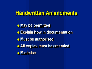 changes to QMS documents may not be made unless: An organisation may choose not to allow any handwritten changes to QMS documents. |