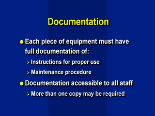 | Equipment instructions, usually supplied by the manufacturer, are an important part of the quality management system. Staff using, maintaining or calibrating the equipment must have ready access to these documents. |
