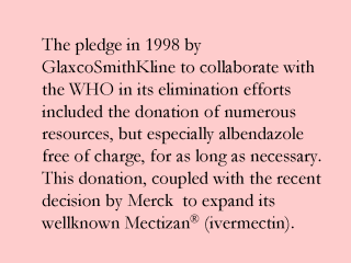 lymphatic filariasis where appropriate, and the creation of additional partnerships with