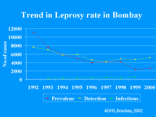 | MDT introduced in 1991 in Mumbai has shown a declining trend in prevalence rate; the new case detection rate (NCDR) has not shown any significant reduction over a period time. |