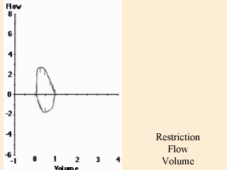 | The shape of the flow volume loop is relatively unaffected in restrictive disease, but the overall size of the curve will appear smaller when compared to normals on the same scale. Similarly, there will be a rapid upslope on the volume time curve, but such patients will reach a smaller vital capacity. |