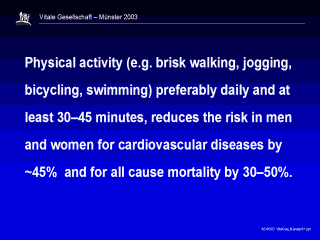 Physical activity and health: a report of the Surgeon General. Centre for Disease Control and Prevention. Atlanta, 1996 Blair SN et al. Influences of cardiorespiratory fitness and other precursors on cardiovascular disease and all-cause mortality in men and women. JAMA 1996; 276: 205–210