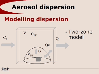 The model considers the following parameters: volume V, ventilation rates Q, exchange rate Qe and Emission rate G. |