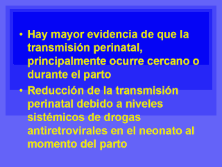 - Eficacia de ZDV en disminuir la transmisión perinatal no está