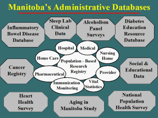 number allows researchers to track changes in these characteristics over time. Substantive files, including vital statistics, information on hospital stays, physician visits and nursing home stays use the same encrypted number to track utilization of services. Documentation and software are increasingly important as files become more numerous and research possibilities multiply. The outer ring of studies in this figure represent special files - both clinical and survey data - that have been linked to registry files for various projects (e.g. Bernstein et al. 20011; Robinson et al. 19972; Murray et al. 20023; Mustard et al. 19994). |
