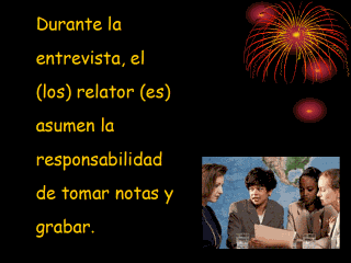 facilitador deberá tomar tantas notas como sea posible. Es aconsejable que de ser posible, se cuente con 2 relatores si la entrevista no se graba. |
