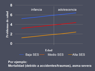 de la vida. Por ejemplo, vemos este patrón para mortalidad por accidentes y traumas o la prevalencia de enfermedades crónicas severas. |