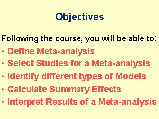 contained in health care literature. You can conduct meta-analysis at a number of levels: