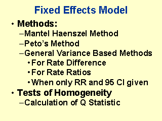 Petos Method is similar to Mantel Haenszels but computationally simpler. Use Calculators for General Variance Based Methods for Rate Difference and for the situation when only Relative Risk Estimate and 95% Confidence Interval are provided. |