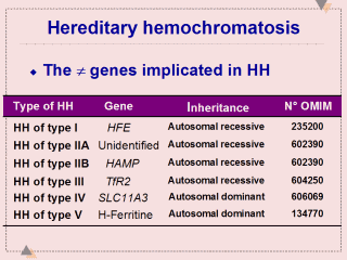 - HH type 5 is linked to a gene encoding subunit H of ferritin.