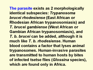 African trypanosomiasis, but zoonotic in East Africa with animal reservoirs such game