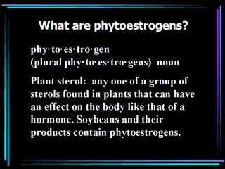As you might have noticed, both in the scientific literature, as well as in the media, the grocery stores, and pharmacies, there is a great deal of interest in phytoestrogens recently. So, what are phytoestrogens? The term has earned a spot in the dictionary and is defined by Encarta as you see here. Encarta® World English Dictionary [North American Edition] © & (P) 2001 Microsoft Corporation. All rights reserved. |