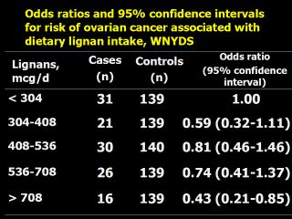 Adjusted for age, education, total months menstruating, difficulty becoming pregnant, oral contraceptive use, menopausal status, and total energy (McCann et al. J Nutr 2003;133(6): 1937-42)