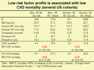 1999;282:2012 Low risk: chol <5.2; BP£ 120/80, no smoking All subjects without IHD and diabetes at baseline Others: fairly low mean levels of RF Life expectancy +5.8 (men), 5.8 (women) |