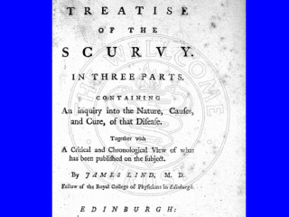 | Lind also initiated the first effective measures aimed at enhancing hygiene in the British navy, but he is best known for his work on scurvy, reported in A Treatise of the Scurvy (1753). Not only was this the first reported clinical trial, it also was proof that a dietary deficiency can cause disease, that a well-balanced diet is essential for good health. Thus Lind, like Fracastorius, was responsible for an important paradigm shift in understanding of causes and control of disease. |