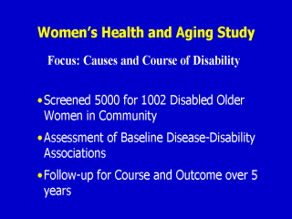 Women's Health and Aging Study (WHAS) The WHAS has two major goals: 1) to