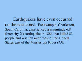 the eastern states, as well as the fact that earthquakes in the East exert damaging