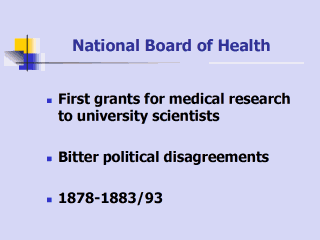 outbreaks. In 1873 Congress decided not to continue funding the Board, and