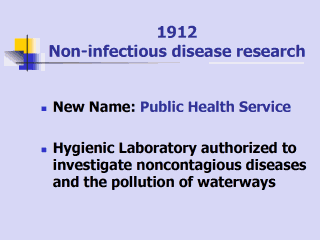 similar questions. The Hygienic Laboratory launched studies on many of these