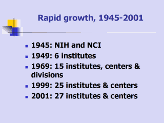 Health and the National Cancer Institute. In 1946, Congress began creating