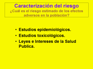 afectadas; los tipos de efectos a la salud; la probabilidad de la exposición;