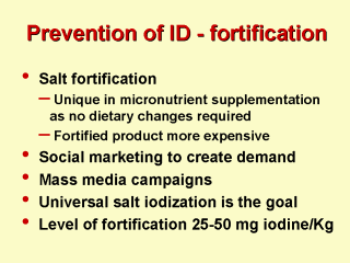 Iodinated bread Netherlands, Russia and Tasmania have used bread as a vehicle for fortification. In the Netherlands and Australia, program stopped because of iodine-induced thyrotoxicosis and logistic reasons. Iodinated water In selected rural areas of Thailand and Indonesia, iodine is added periodically to cisterns storing cooking and drinking water. In Sicily city water supplies have been treated, but this program was stopped for technical reasons. Irrigation water iodized in western China, resulted in increase in urine levels and children’s growth.