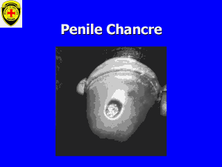 The "punched out" character of a syphilitic chancre is quite apparent in this photograph.