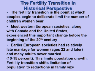 By 2000 most of the rest of the world had experienced a fertility transition, although fertility remains relatively high in some developing countries