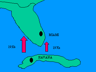| There were two waves of migration from Cuba to Miami. At the 50th it were mostly Spanish heritage people going to USA because of revolution and at 70th it were mostly African heritage prisoners from Cuba. So, the political reasons also played an important role. |