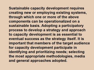 general approaches to capacity development include: · Pre-service training and continuous education: There should be an emphasis on developing curricula, course content and materials for integrating HIV into health, education and other sectors of FBOs. Mechanisms are also needed to support long-term personnel training and staff retention, such as completion of degree programs. · In-service training, particularly support for the development of regional or different FBOs training institutions: in-service training needs to be responsive to the evolving needs of participants and delivered by institutions that can provide integrated packages of technical, management and leadership training. · Support for the development and use of national / regional consultants: Training technical support provides is essential to support HIV programming at both government and non-governmental levels. National and regional expertise helps provide more culturally appropriate support. · Targeted technical assistance: This includes helping program managers gain access to specific types of short-term expertise, from both national and international sources. · Twinning for training: Institutional and program twinning is an under-utilized, though highly effective, form of capacity development. International and regional South-South technical cooperation and networking requires building institutional frameworks and funding opportunities to operationalize exchange programs that respond to corresponding needs and experiences among participating partners. This will be established to FBOs in Cameroon. · Distance learning: Existing distance learning mechanisms provide a ready-made delivery mechanism for capacity building in HIV/AIDS programming. They also have been largely underused to date. Capitalizing on this delivery system involves understanding the networks, media, and learning methodologies employed in a given setting, or by a given sector, as well as their outreach and potential for curriculum development/adaptation, including integration of HIV/AIDS specific issues. |