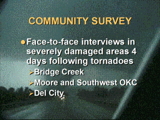 A total of 611 persons were interviewed on-site. Seventy-five percent of those (450) had been in the damaged areas when the tornado struck.