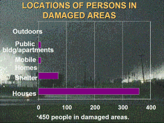 time of the tornado, the vast majority were inside houses (80%) , and only