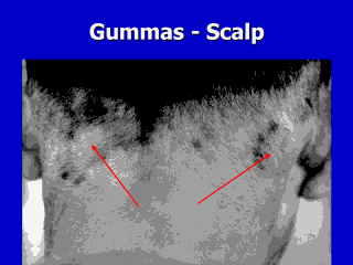 Gummas of the scalp may be concealed by hair; removal of the hair will allow better visual inspection.