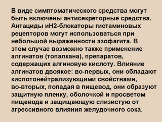 Отсутствие эффекта от лечения эрозивно-язвенного эзофагита всеми перечисленными препаратами в течение 2 недель требует изменения терапии.