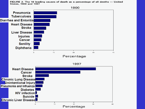 The 10 leading causes of death as a percentage of all deaths - United states, 1900 and 1997
