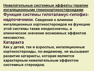 Обмен глюкозы У детей применение будесонида в дозе от 400 до 1000 мкг/сутки не сопровождалось изменениями уровня глюкозы плазмы натощак или гликозилированного гемоглобина. При увеличении дозы до 1000 мкг/сутки отмечено повышение сывороточных уровней глюкозы и инсулина натощак в пробе на толерантность к глюкозе, хотя эти показатели оставались в рамках нормальных значений.
