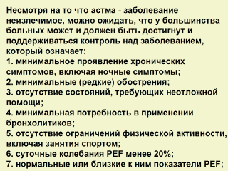 Выбор лекарственных препаратов делают в зависимости от тяжести астмы, лечения, которое больной получает в настоящее время, медикаментозных возможностей, доступности противоастматических средств. Поскольку астма - одновременно заболевание хроническое и динамическое, лечебные планы должны учитывать возможные изменения лечения как для всех больных, так и для конкретного больного.
