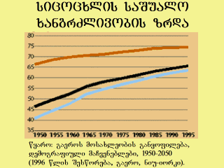 riTia ganpirobebuli profilaqtikis aucilebloba? amJamad msoflio gacilebiT ufro janmrTelia, vidre igi iyo odesme. mosaxleobis sicocxlis saSualo xangrZlivobis mniSvnelovani zrda bolo saukunis manZilze (30 wliT mTel msoflioSi) rogorc ganviTarebul (slaidze naCvenebia yavisfrad), aseve ganviTarebad qveynebSi (cisferi xazi, xolo Savi xaziT naCvenebia mTeli msoflios maCveneblebi) upirveles yovlisa kavSirSia profilaqtikuri procesebis gaumjobesebasTan da ara klinikuri medicinis progresTan.slaidi Seqmnilia globaluri profilaqtikuri qselis superkursis jgufis mier. |