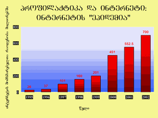 bolo aTwleulis manZilze mTel msoflioSi internetis gamoyenebam arnaxul masStabebs miaRwia. ufro meti Zalisxmevaa saWiro imisaTvis, rom interneti ukeTesad iqnes gamoyenebuli profilaqtikuri medicinis saWiroebisaTvis. "industriis ganviTareba mohyva adamianis samsaxurSi hidro-meqanikuri da eleqtruli energiebis Cayenebas da orTqlis manqanis gamogonebas. dRes Cveni industria efuZneba internets. internetis zegavlena iseTivea rogorc industriis winandeli infrastruqturebisa" –amonaridi vint serfis (Vint Cerf) superkursis leqciidan. |
