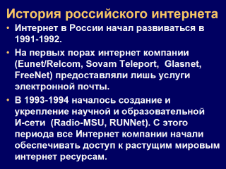 интернета способствовали такие компании, как Global One Russia and RosNet.