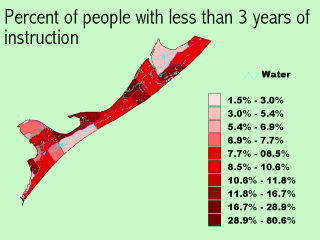 São Jose do Norte county, percentage of people with poor instruction by censitary district.