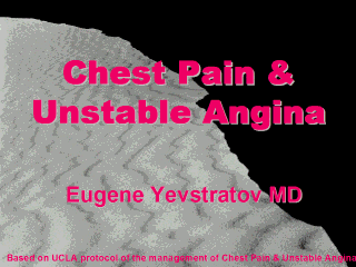 coronary artery disease. Unstable Angina: Patients without evidence of acute myocardial infarction who have chest pain and are felt to have an intermediate or high likelihood of significant coronary artery disease. Acute Myocardial Infarction: Patients with symptoms suggestive of myocardial infarction and an ECG with ST elevation of 1 mm or left bundle branch block. Patients with medically refractory chest pain associated with ischemic ECG changes that persist for greater than 30 minutes (refractory unstable angina/non Q-wave myocardial infarction) are included in this category. |